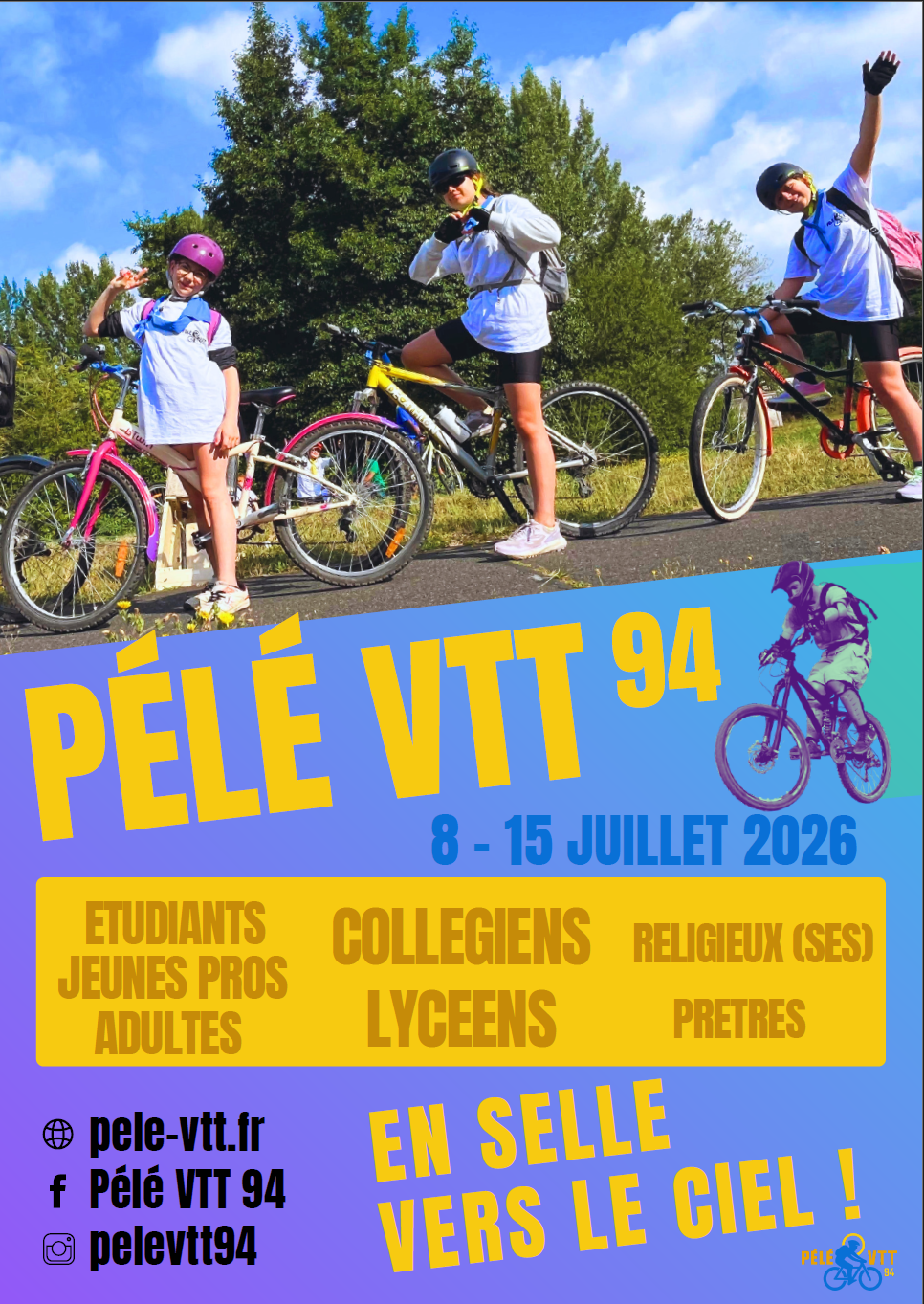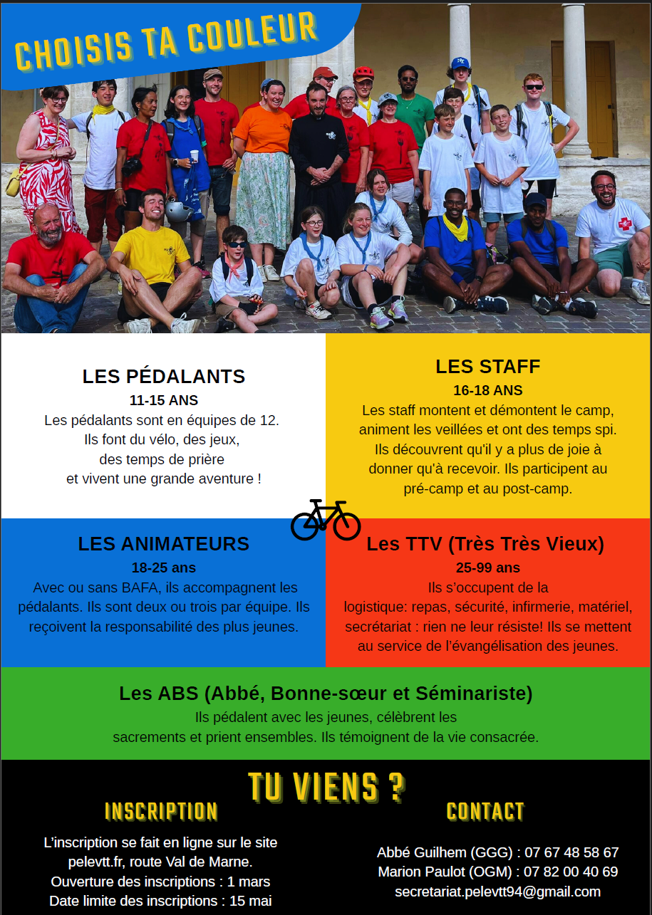 Pendant 5 jours, des collégiens pédalants, accompagnés de lycéens, étudiants, adultes, prêtres et religieux, vivront une aventure sportive et spirituelle unique, de Chartres (départ possible de Paris) à Saint-Maur (Notre-Dame des Miracles).